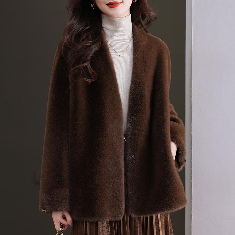 羊毛家慵懒风毛衣外套女开衫中长款宽松外穿2025秋冬新款水貂绒