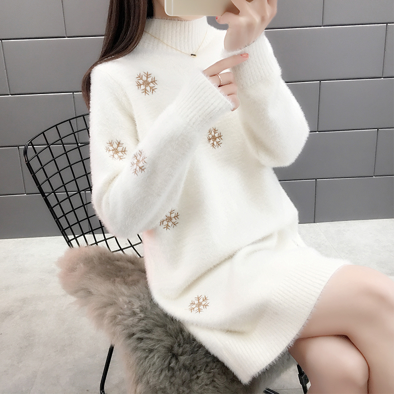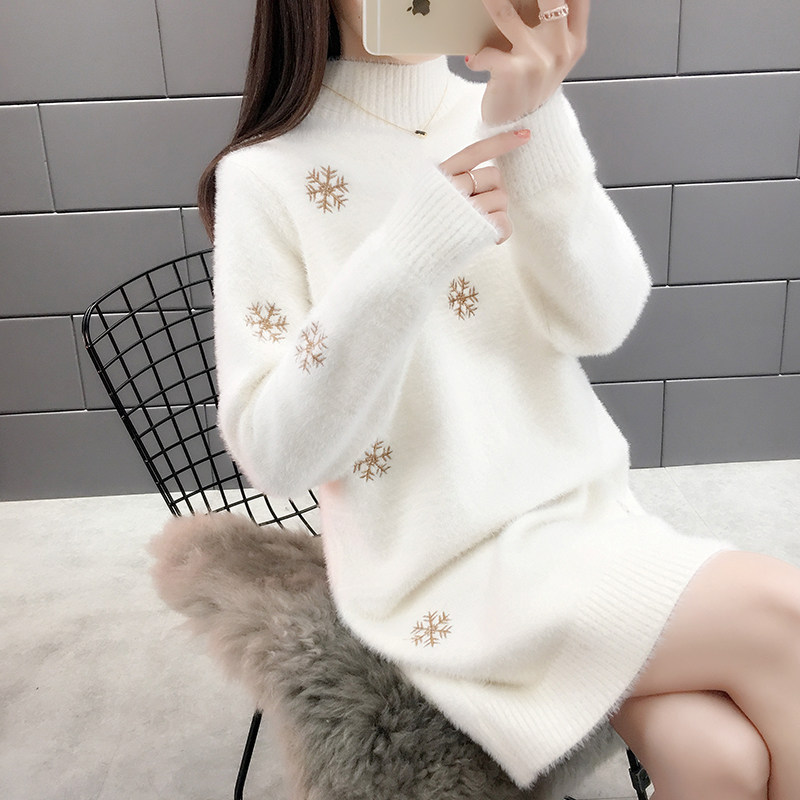 仿水貂绒中长款毛衣女过膝打底衫加厚半高领套头秋冬外穿2025新款