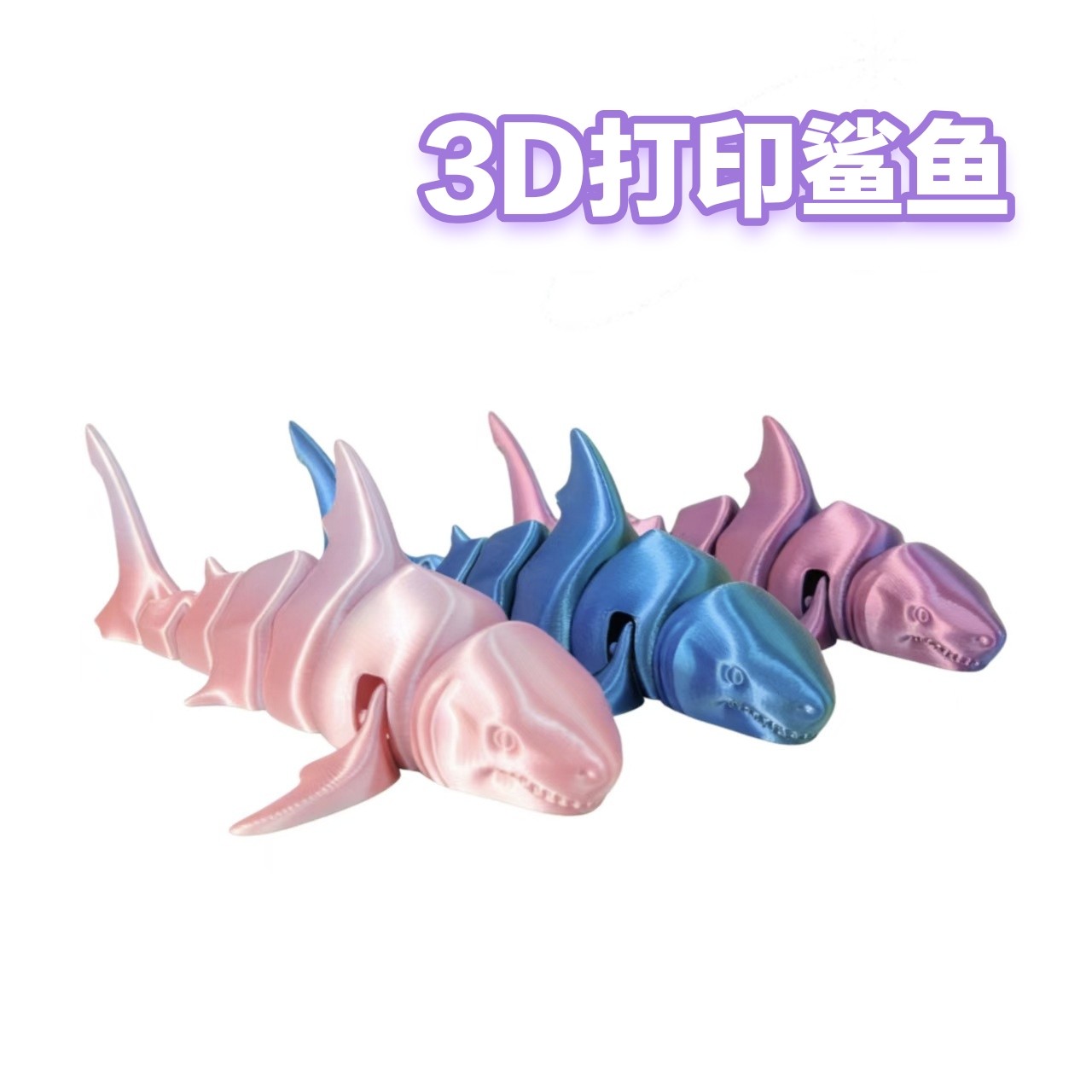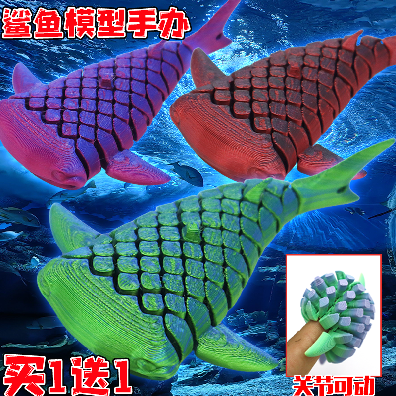 3D打印全关节可动鲨鱼模型多色炫彩仿真海洋生物桌面摆件跨境爆品