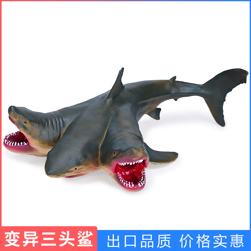 林畅模玩史前海洋怪兽三头巨齿鲨鱼模型仿真儿童魔幻神话动物玩具