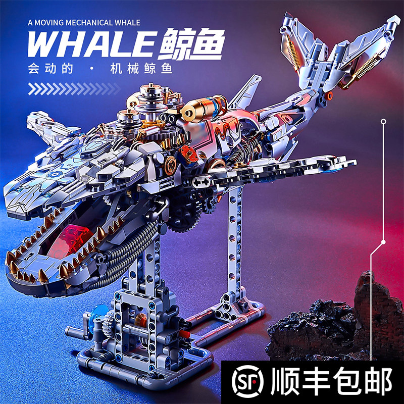 适用乐高机械可动鲸鱼积木鲨鱼模型益智拼装玩具男孩女孩礼物摆件