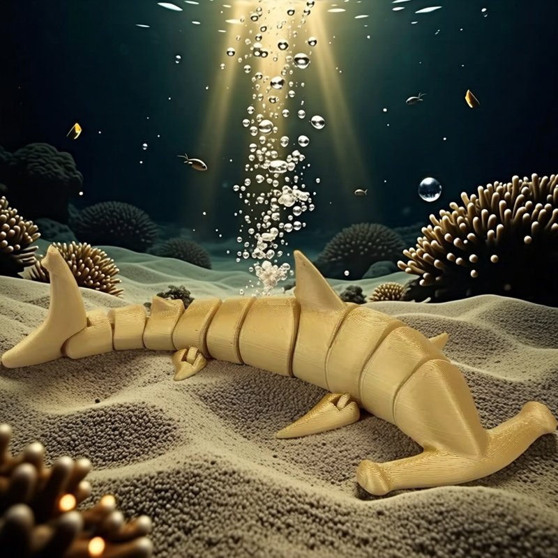 3D打印深海迷航黄金锤头鲨鲨鱼模型手办海怪巨兽恐怖摆件儿童玩具