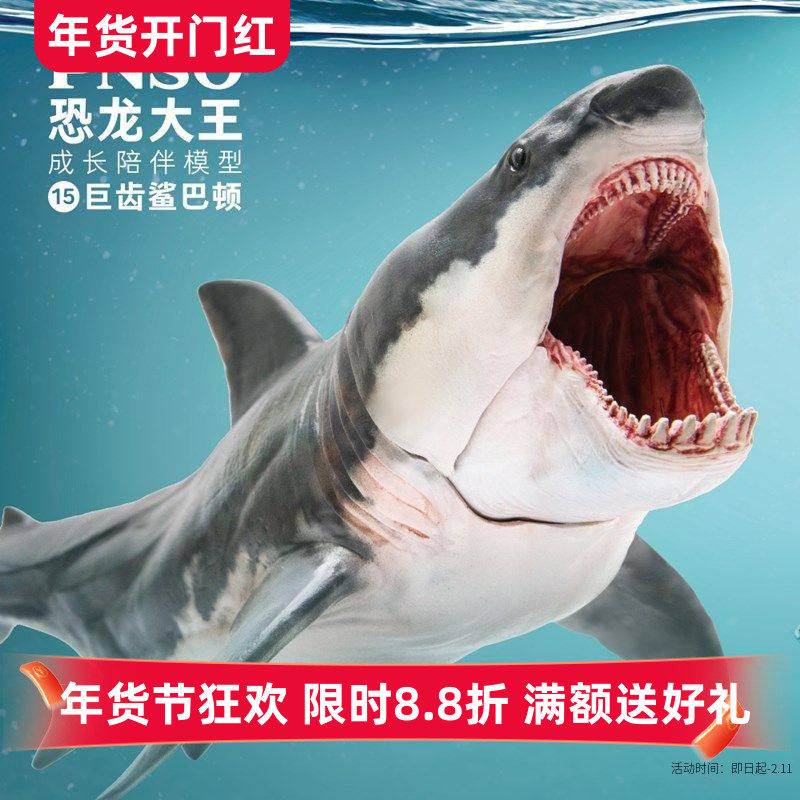 PNSO恐龙大王成长陪伴模型15巨齿鲨巴顿儿童鲨鱼模型手办可动