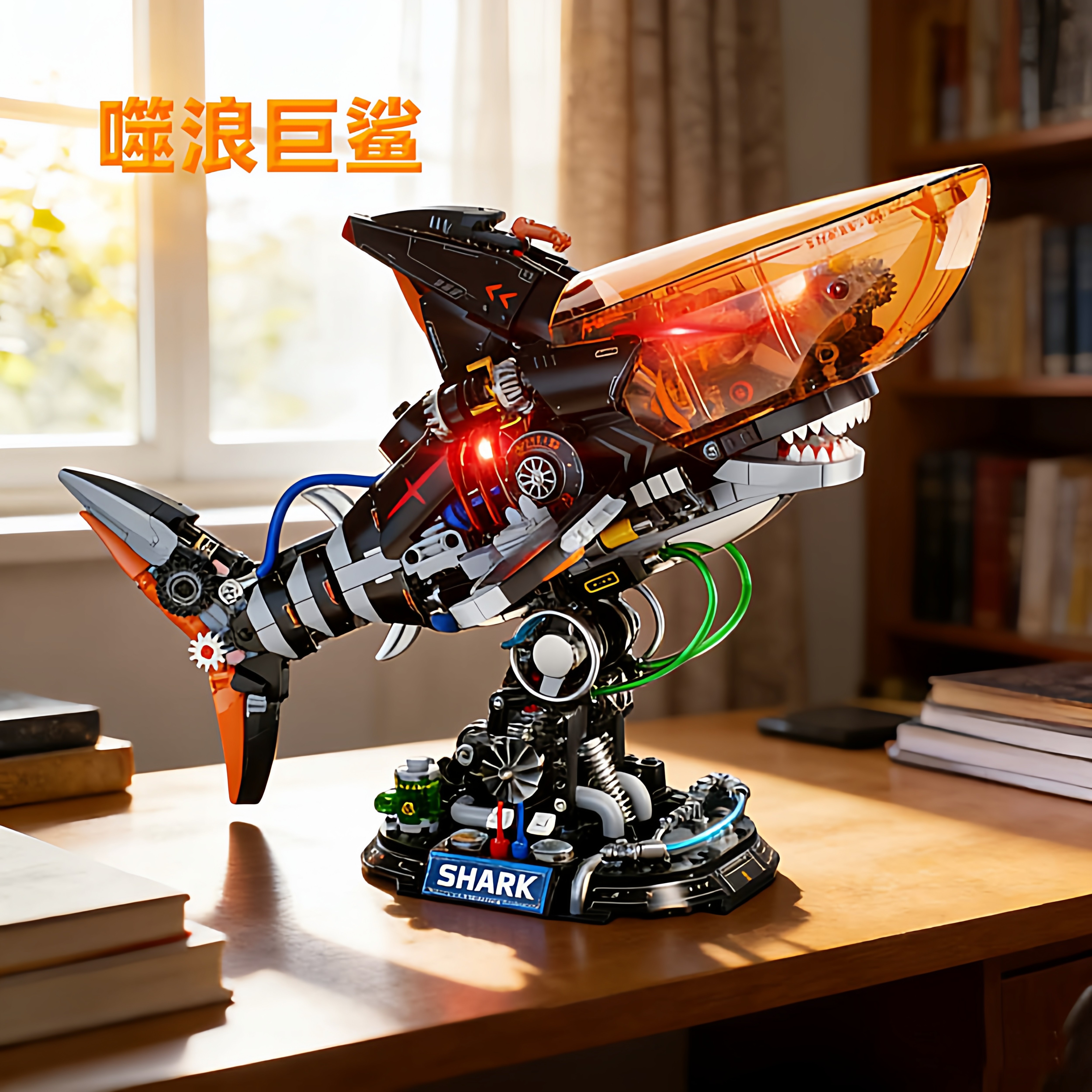 2026新款机械鲨鱼模型男孩女孩拼装积木益智玩具拼图6到12岁以上