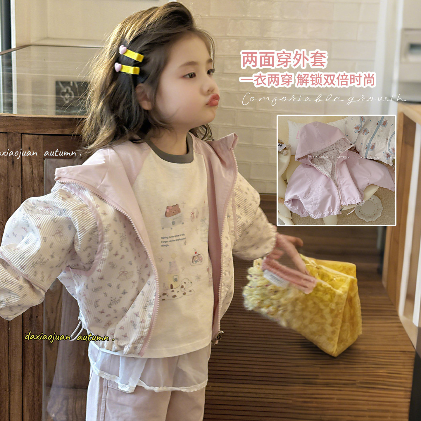 大小卷儿童双面穿外套春季2026新款韩版洋气男女童夹克春秋上衣