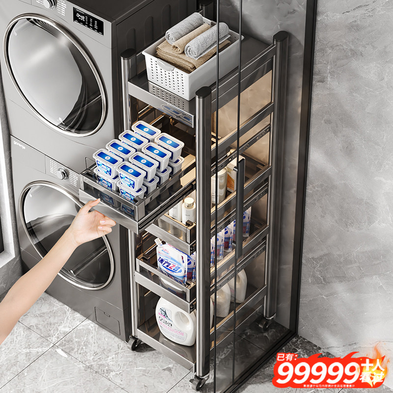 阳台置物架落地抽拉收纳分层架浴室卫生间洗衣机夹缝多功能储物柜