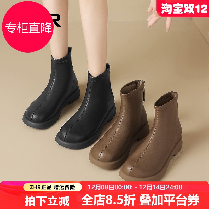 ZHR2025年新款秋冬及踝靴马丁靴平底短靴切尔西女靴爆款绒面裸靴