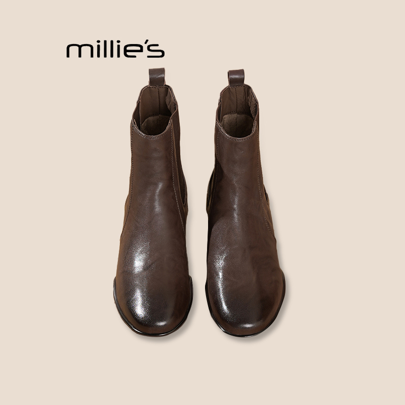MILLIE'S/妙丽短靴女秋冬裸靴真皮靴子马丁靴平底切尔西靴烟筒靴Q