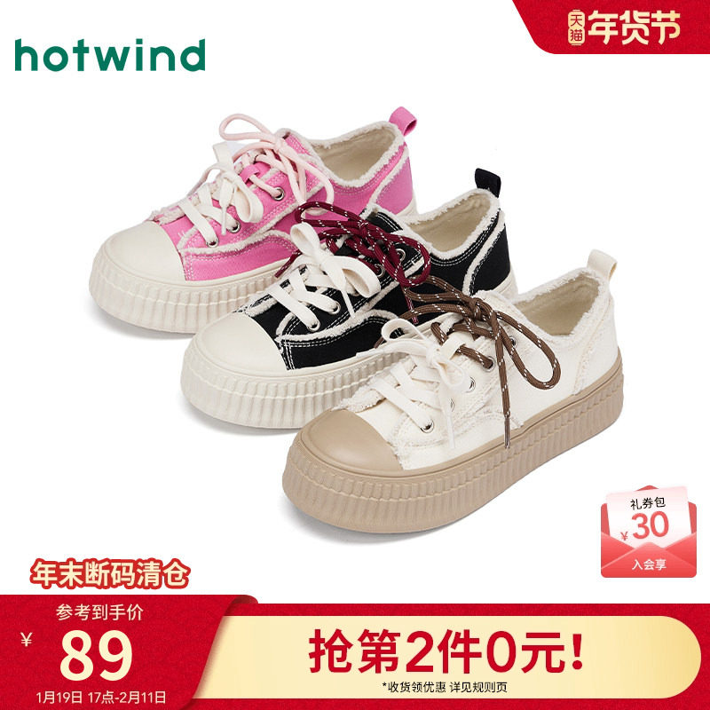 热风厚底帆布鞋女2025年春季新款毛边休闲女鞋百搭减龄板鞋低帮鞋