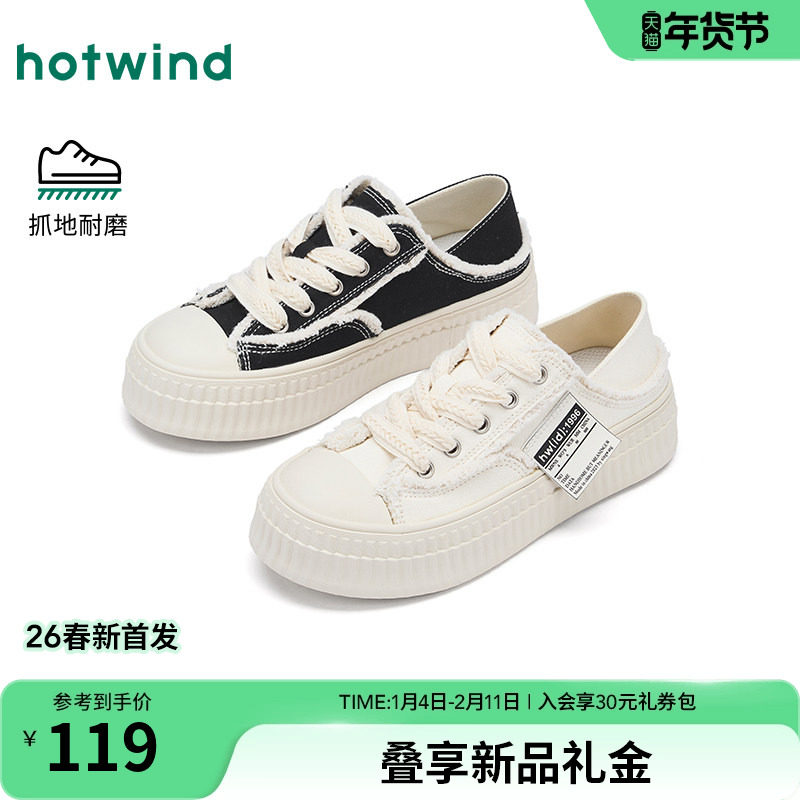 热风厚底帆布鞋女2026年春季新款日常通勤休闲鞋子百搭运动小白鞋