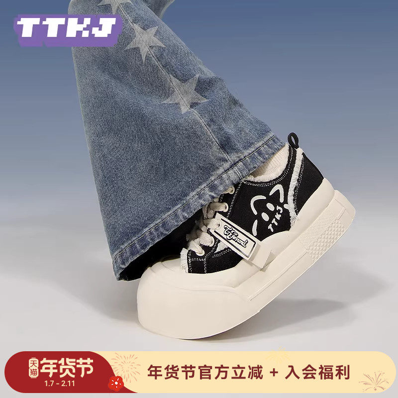 TTKJ厚底帆布鞋女款黑色大头鞋mikko联名增高休闲运动巨好看鞋子