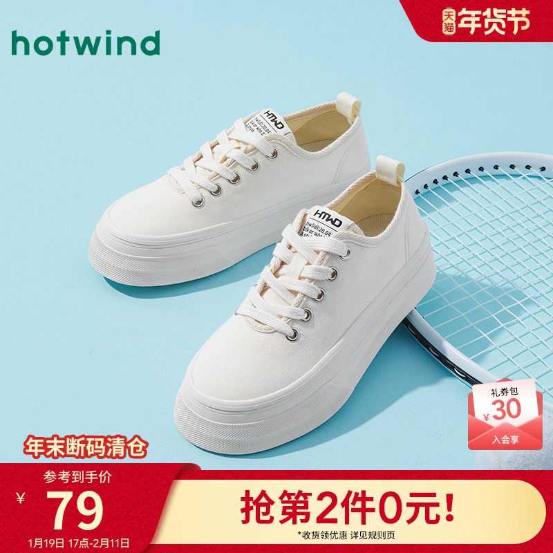 热风厚底帆布鞋女款2025年春季新款简约纯色休闲鞋百搭小白鞋女鞋