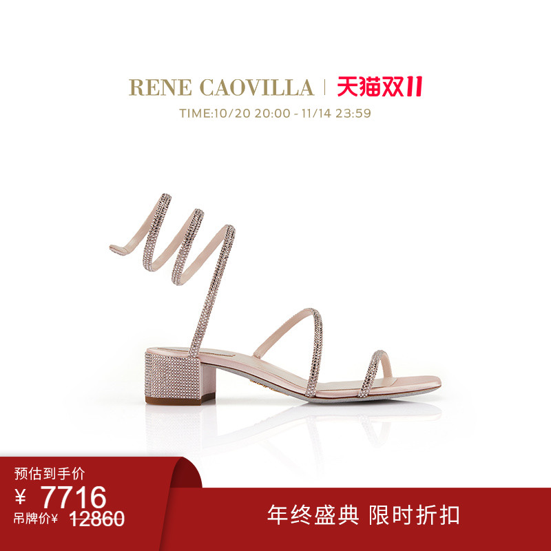 【双11折扣】RENE CAOVILLA CLEO系列绑带粗跟鞋凉鞋 RC女鞋