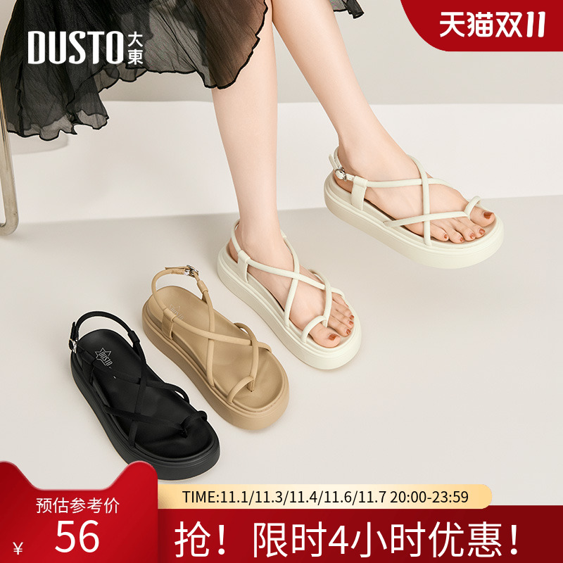 大东绑带凉鞋女鞋2025夏季新款时尚休闲粗跟中跟一字扣厚底鞋1255