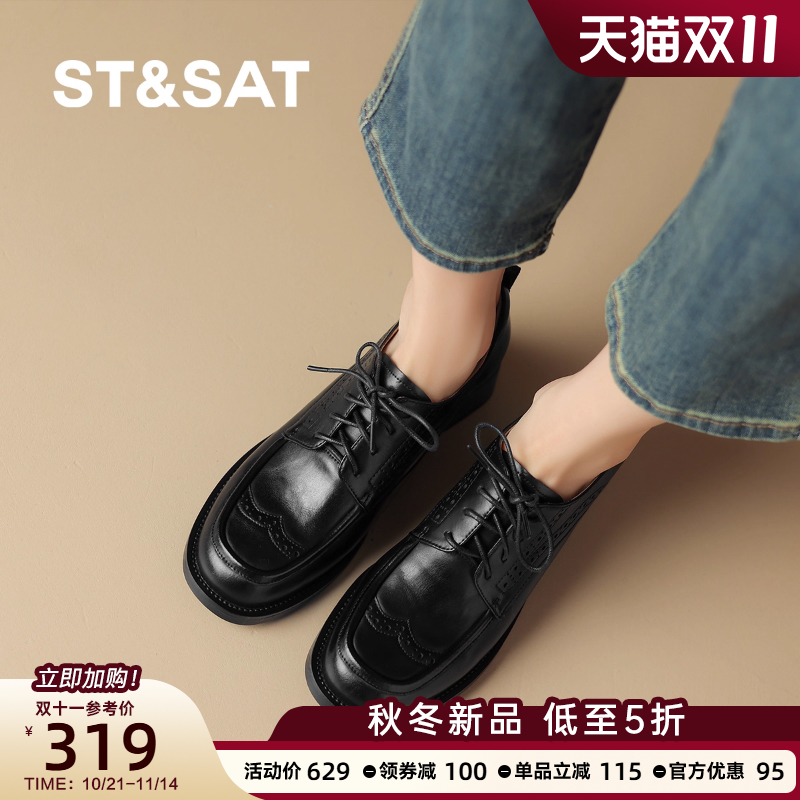 St&Sat/星期六2025新款绑带粗跟耐磨复古通勤鞋女休闲百搭单鞋女