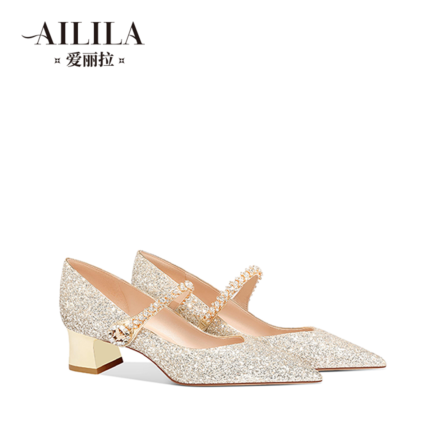 爱丽拉粗跟婚鞋女2025新款孕妇可穿绑带禾秀婚纱两穿不累脚新娘鞋