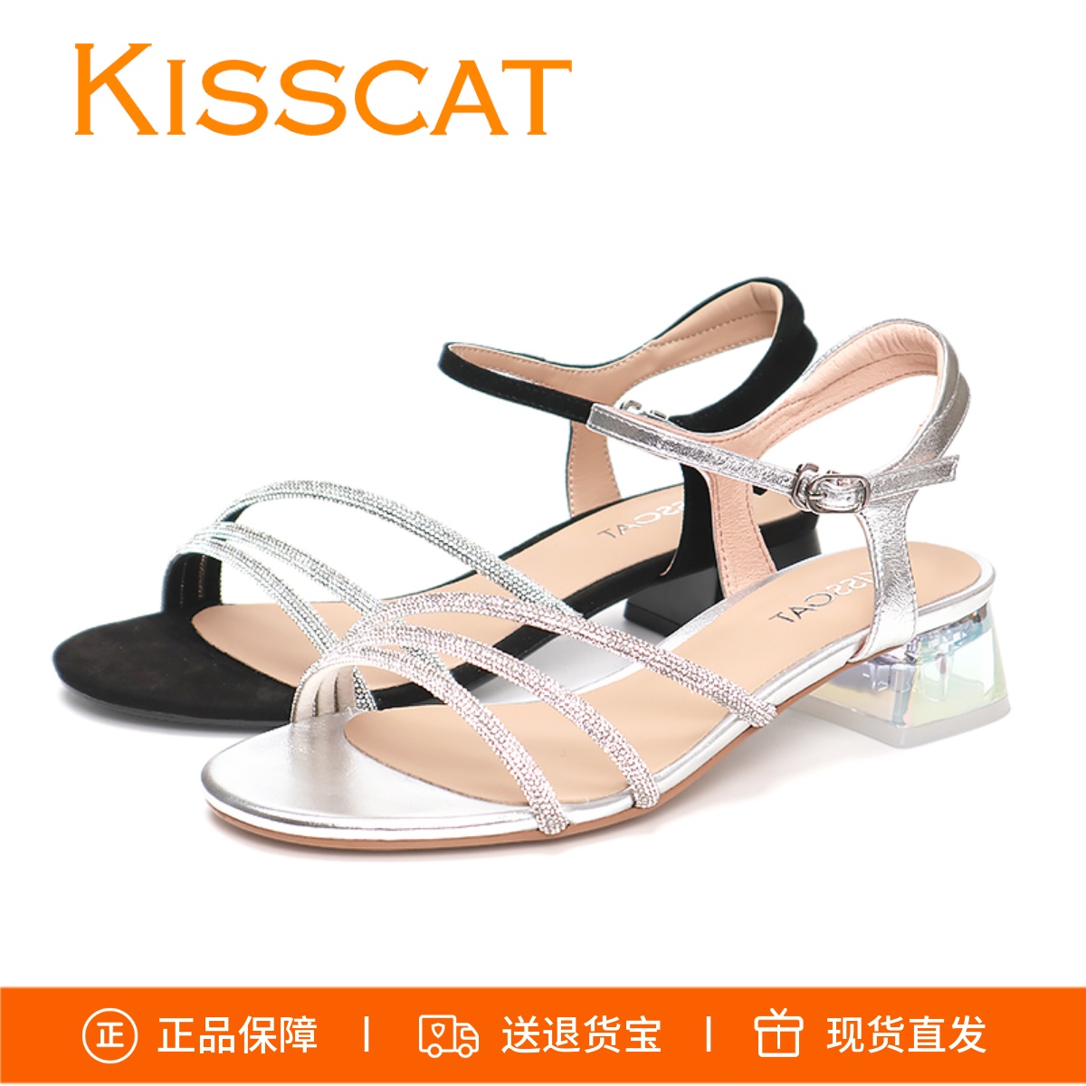 特价KISSCAT接吻猫2025气质百搭绑带粗跟鞋法式绝美时装凉鞋女鞋