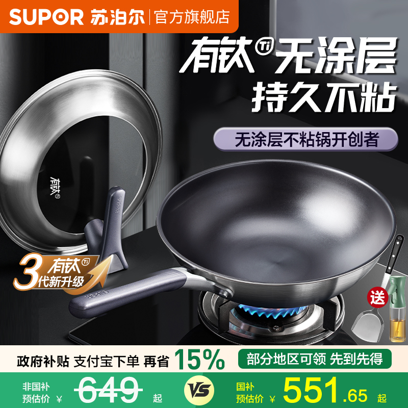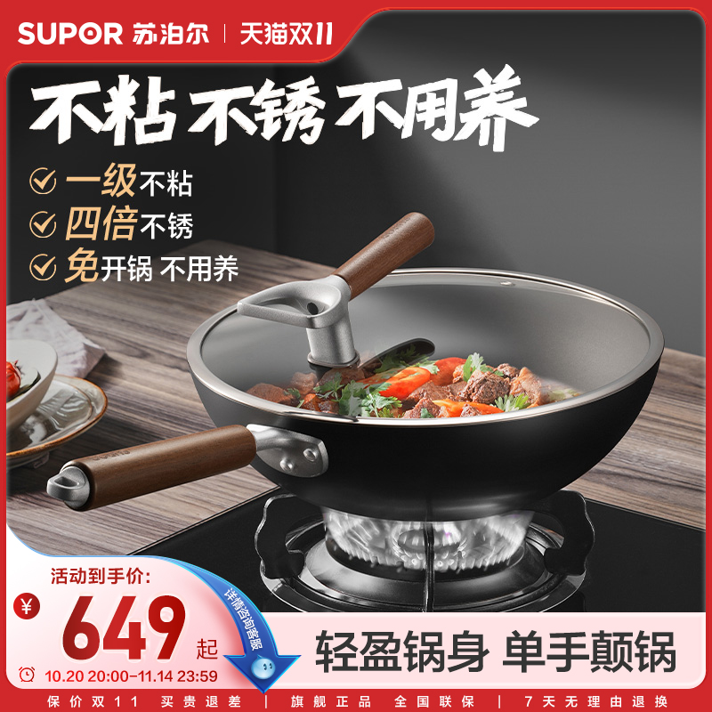 苏泊尔有钛无涂层铁锅家用炒锅不粘锅复合铁炒菜炒锅【商超同款】