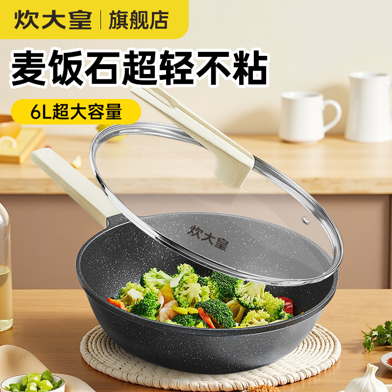 炊大皇麦饭石色不粘锅家用炒锅电磁炉煤气燃气灶适用平底锅炒菜锅