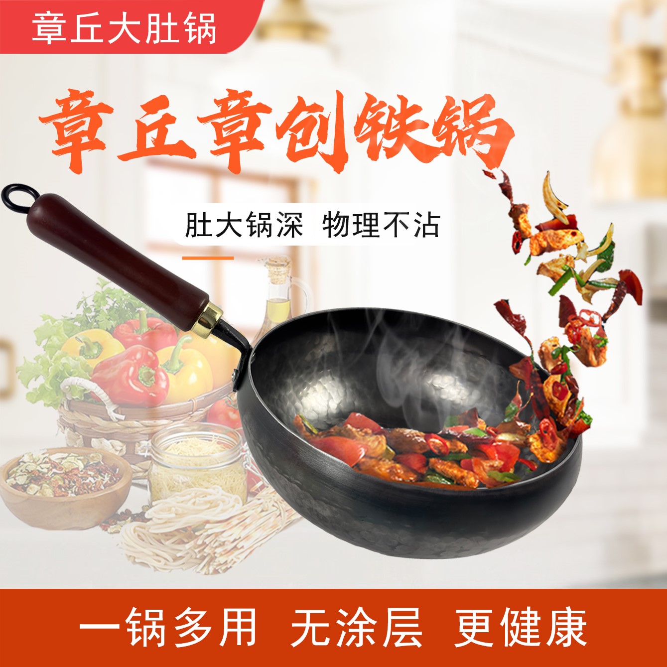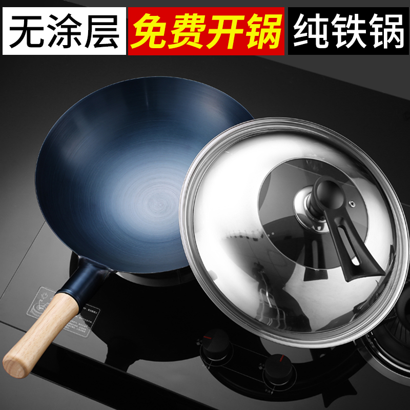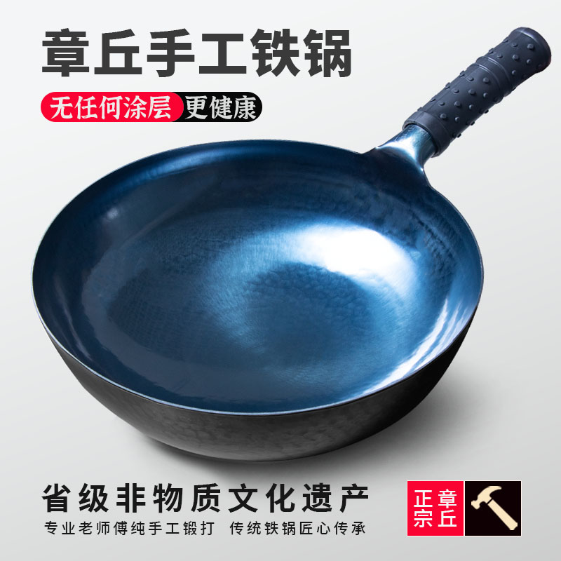 章丘手工铁锅官方旗舰老式家用炒锅燃气灶适用不粘锅无涂层炒菜锅