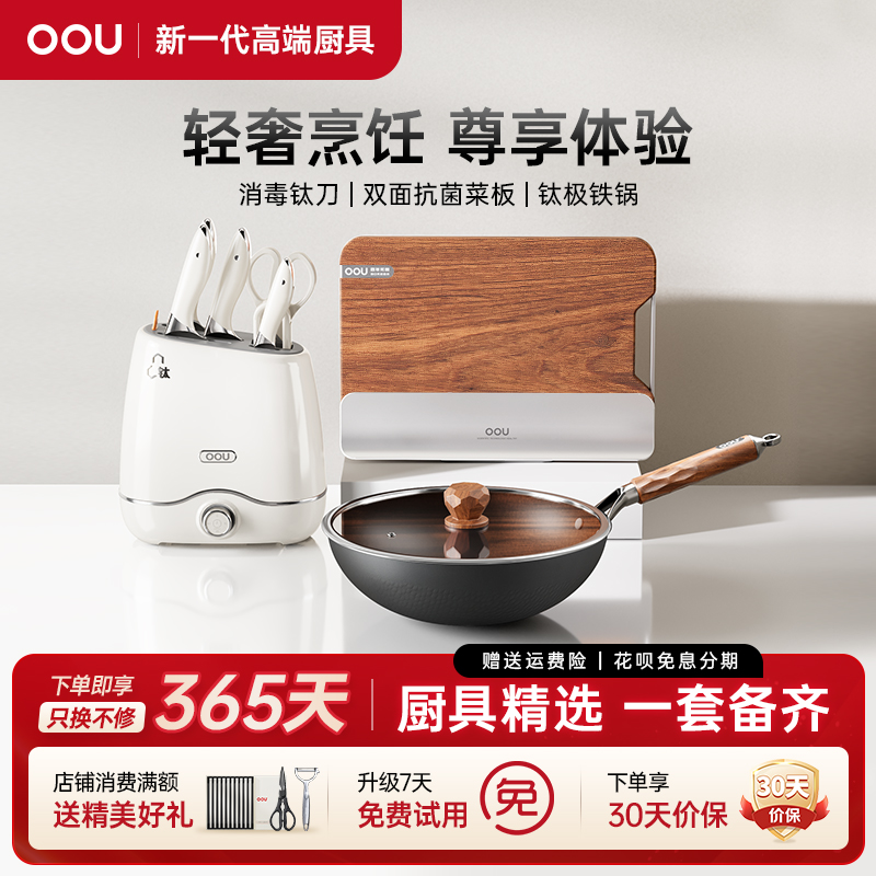 OOU龙鳞锅不粘锅家用炒锅抗菌防霉进口实木菜板鲸pro刀具轻奢套装