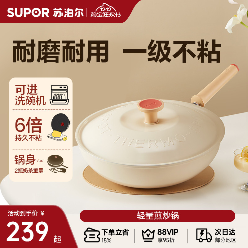 苏泊尔炒菜专用不粘锅家用炒锅燃气灶电磁炉适用平底锅官方旗舰店