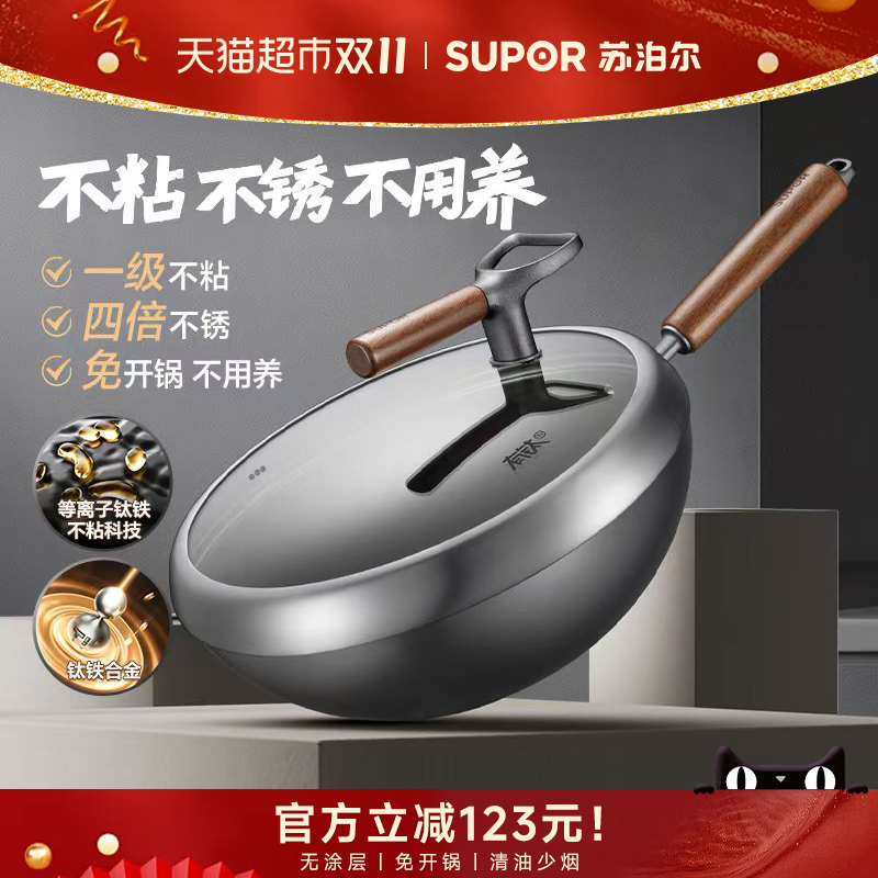 【新品】苏泊尔有钛铁锅铁不粘无涂层家用炒锅不粘锅炒菜锅铸铁锅