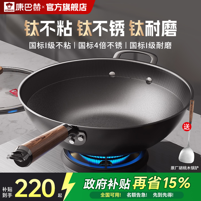 康巴赫有钛铁锅不粘锅无涂层家用炒锅铸铁炒菜锅电磁炉燃气灶专用