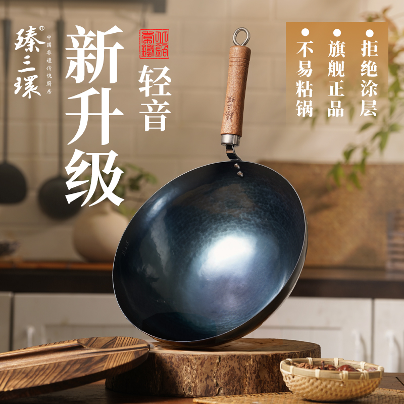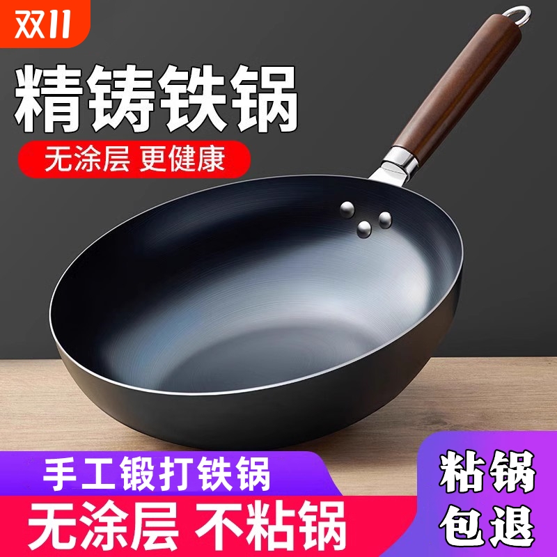 章丘老式纯铁锅不粘锅家用炒锅无涂层炒菜锅手打无油烟燃气灶适用