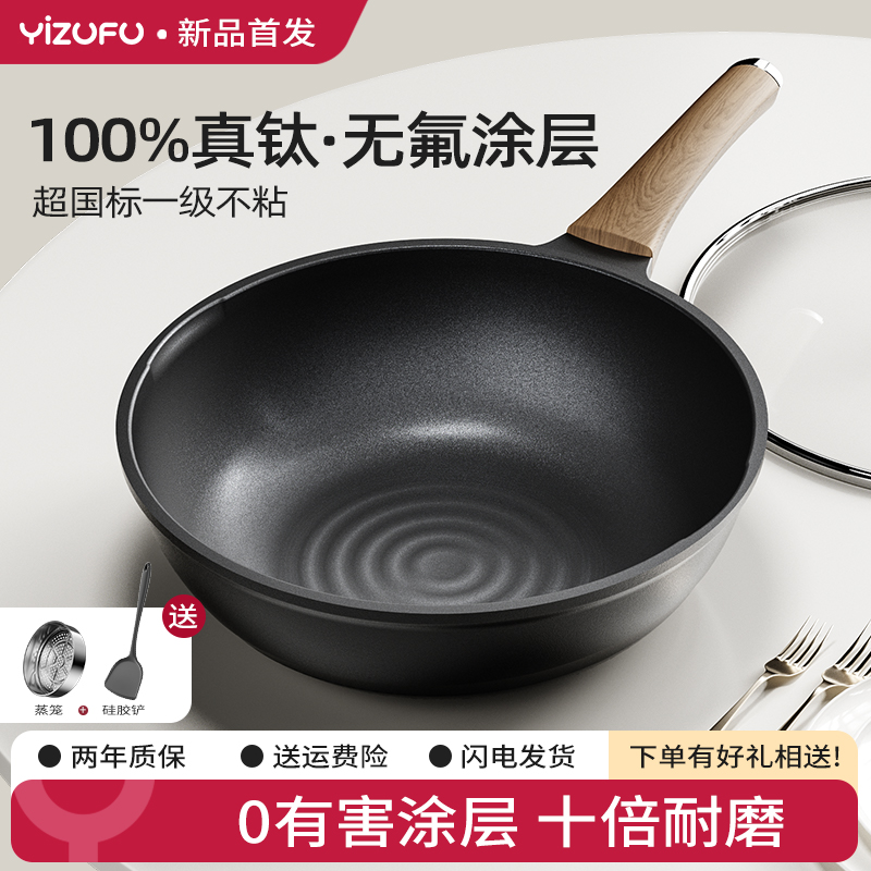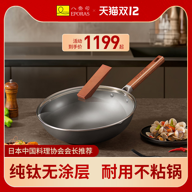 eporas八奈司日本进口家用炒锅纯钛锅炒菜锅无害涂层不易粘钛金锅
