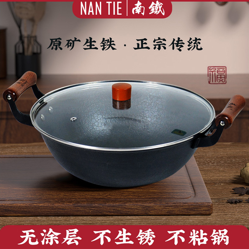 南铁七号迷你双耳家用炒锅无涂层不粘锅燃气电磁炉通用炒锅生铁锅