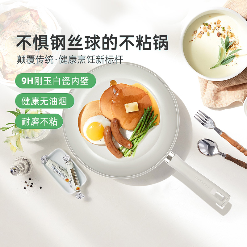 HAPPYCALL进口陶瓷炒锅不粘锅家用炒锅刚玉白瓷耐磨煎炒锅电磁炉