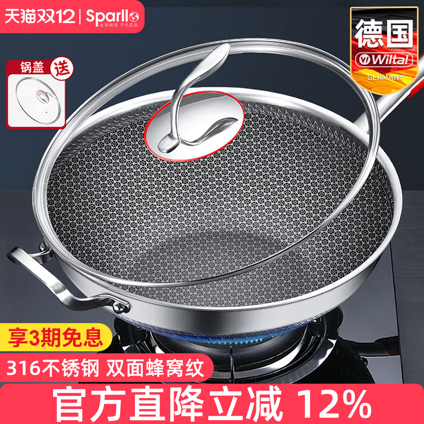 德国不粘锅家用炒锅316不锈钢蜂窝炒菜锅电磁炉燃气灶专用平底锅