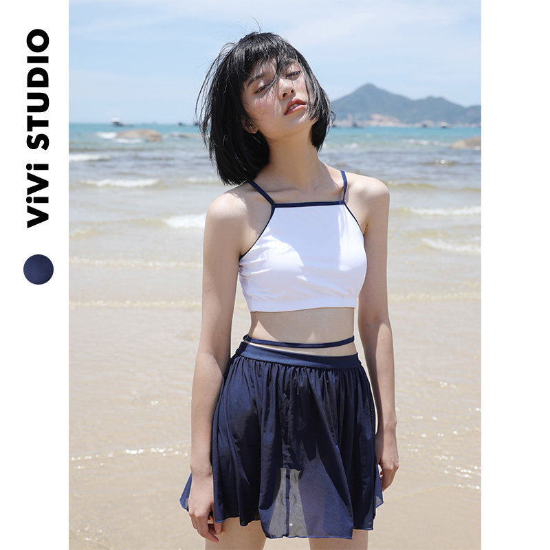 VV原宿风 小板型-日本小清新裙式分体泳装小胸遮肚温泉度假泳衣女