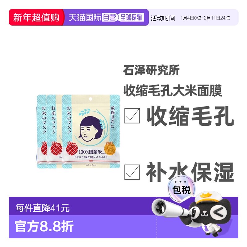 日本直邮石泽研究所女士大米面膜滋润收缩毛孔10枚*3袋正品补水