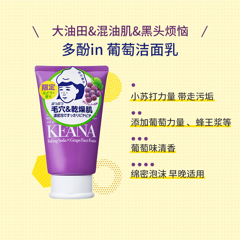 石泽研究所毛孔抚子小苏打弹密泡沫洁面乳洗面奶清洁毛孔黑头葡萄