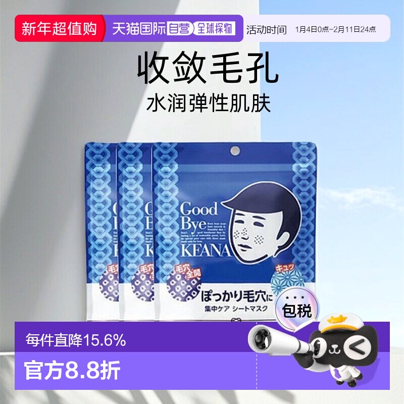日本直邮石泽研究所男士大米面膜补水收缩毛孔10枚*3袋正品品牌