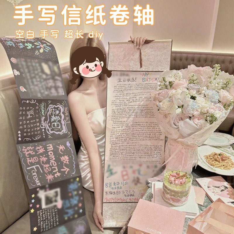 超长卷轴手写信小红薯同款空白卷轴diy材料手写一米长信纸生日礼物表白情书专用纸中性笔绘画送男女朋友
