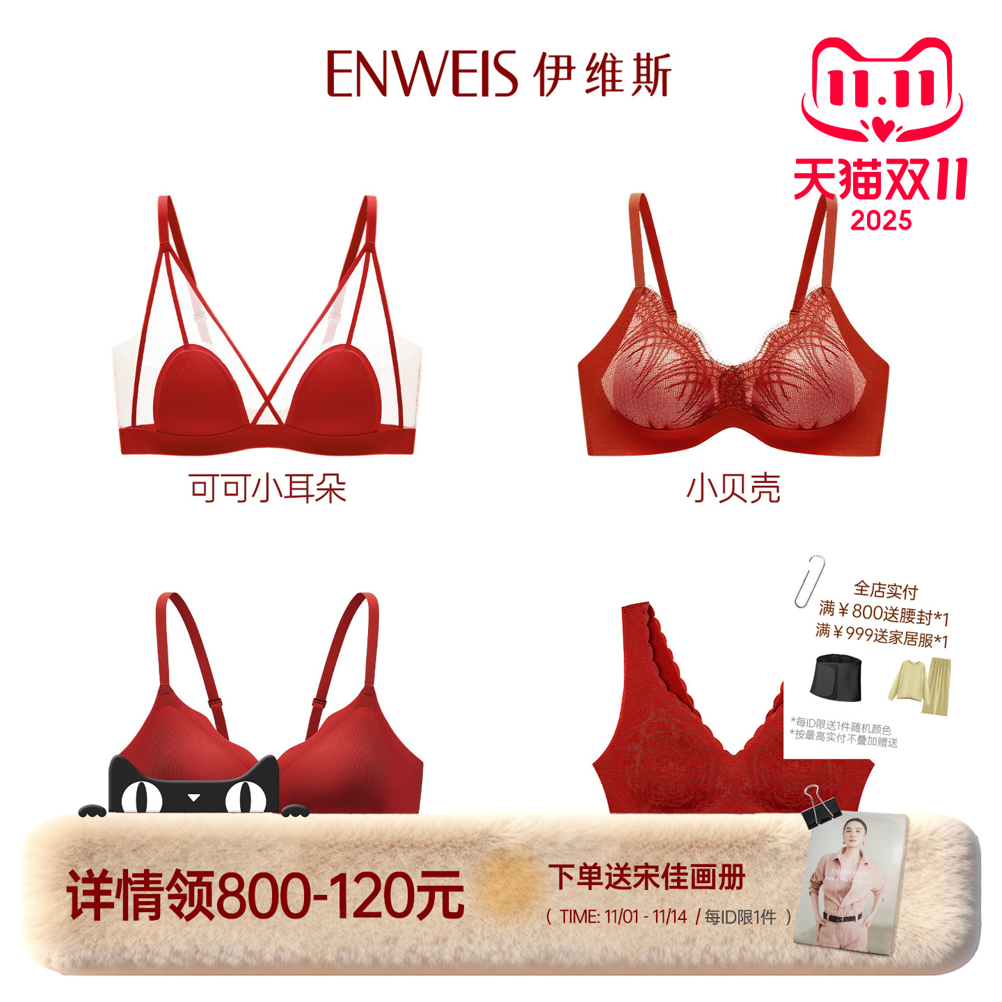 【中女时代】伊维斯红色内衣女本命年无钢圈聚拢蕾丝文胸结婚礼物