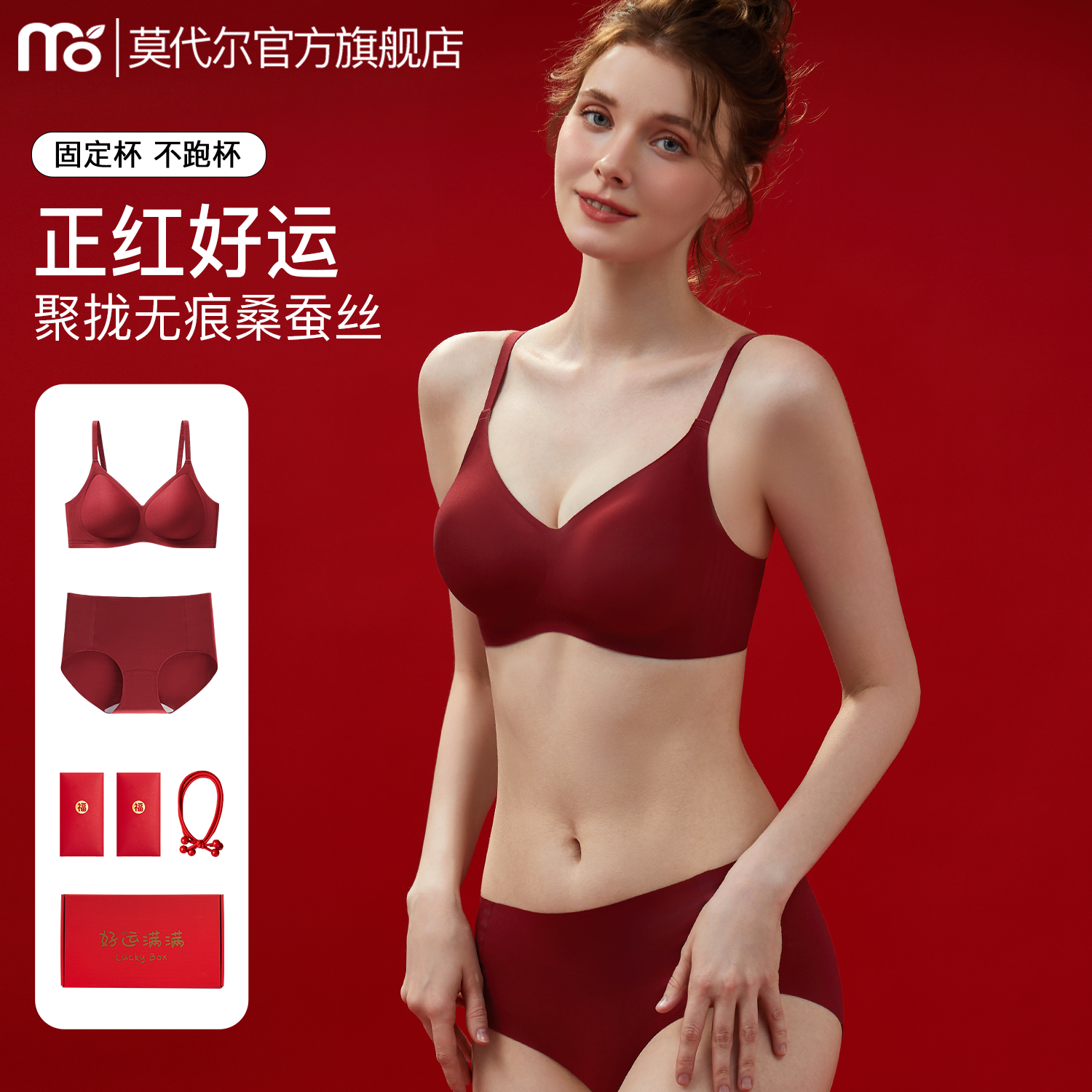 大红色本命年内衣内裤套装女新娘结婚聚拢无痕妈妈文胸罩龙年2024