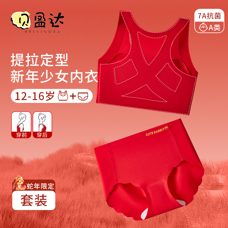 少女红色本命年内衣套装女学生高中生发育期运动文胸女童背心无痕