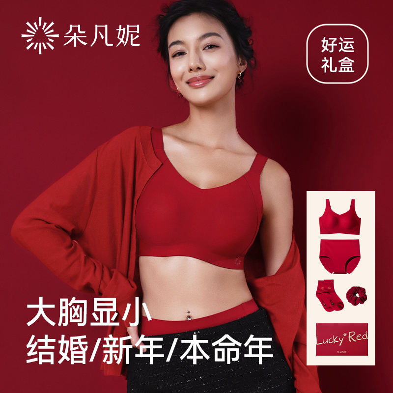 朵凡妮红色本命年内衣套装女聚拢结婚新娘内裤大胸显小全罩杯马年