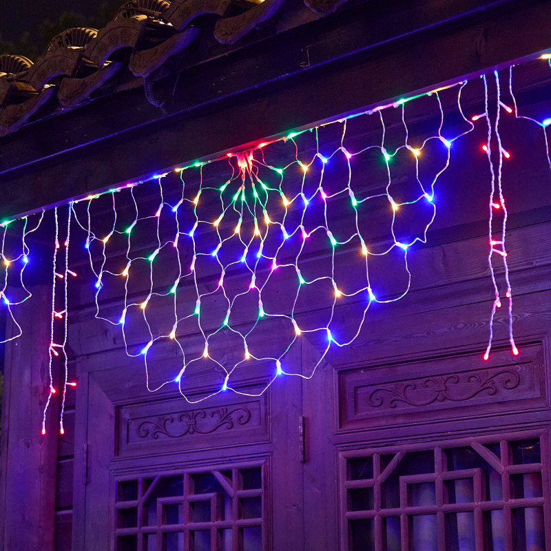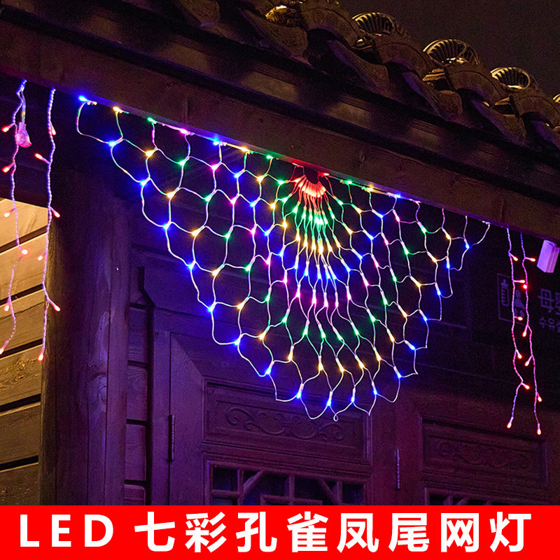 新年孔雀灯窗帘灯户外氛围灯led彩灯闪灯串灯七彩变色家用装饰灯