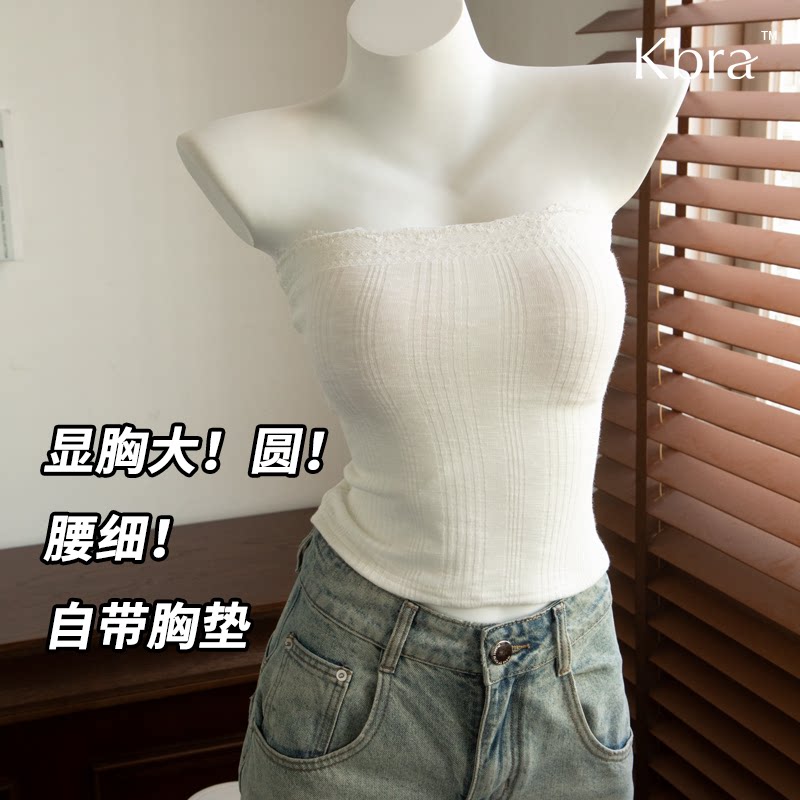 Kbra漫画胸外扩抹胸背心女夏带胸垫小胸显大打底裹胸美背内搭上衣