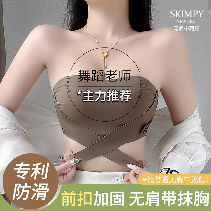 前扣无肩带内衣女防滑聚拢小胸抹胸防走光内搭露肩美背裹胸文胸罩