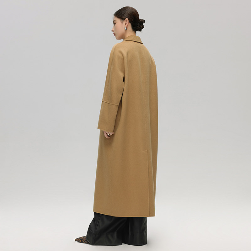 秋冬反季赫本风双面羊绒大衣女中长款落肩袖宽松茧型羊毛呢子外套