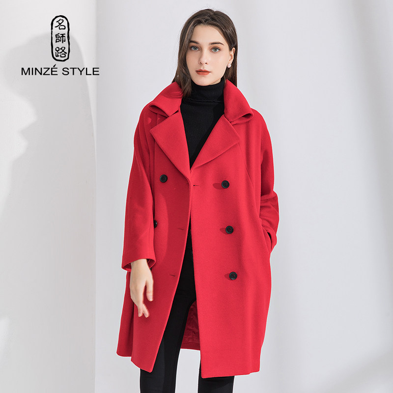 秋冬季双面绒羊毛呢子大衣女中长款宽松大码毛呢外套时尚茧型胖妹