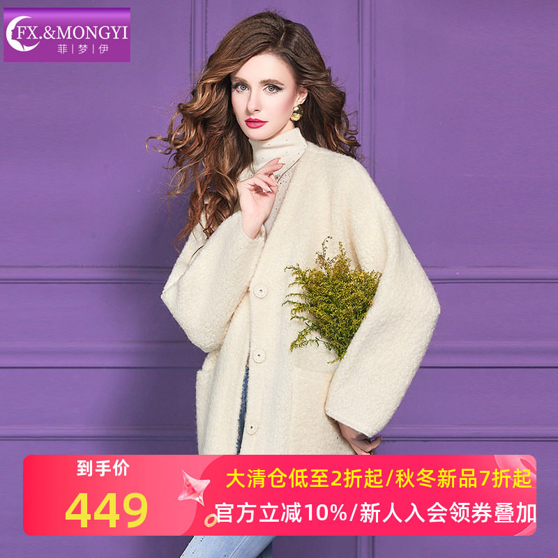 菲梦伊多色羊毛大衣女冬季茧型宽松翻领加厚小个子毛呢外套送小包