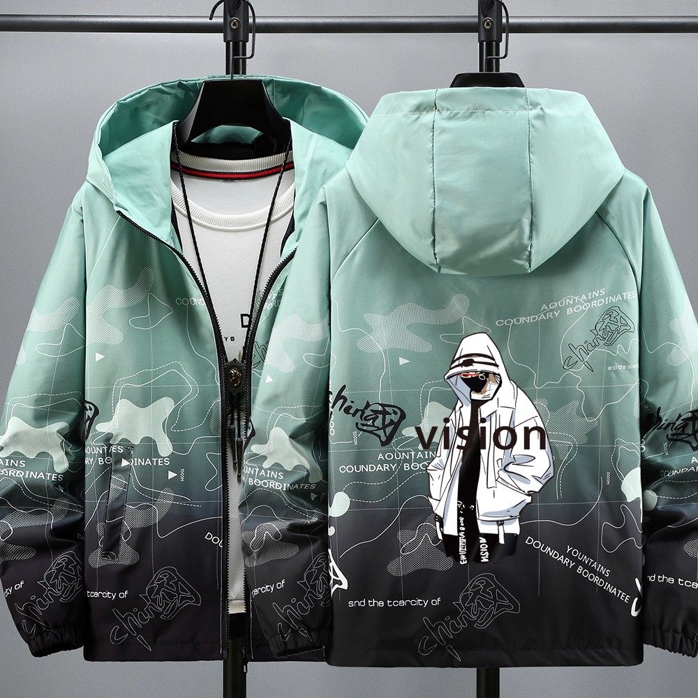 - 中长款连帽夹克男