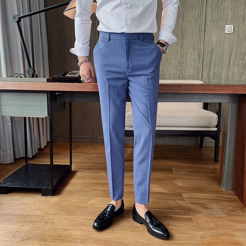 坠感休闲九分西裤男士韩版修身夏季白色小脚裤抗皱英伦纯色西装裤